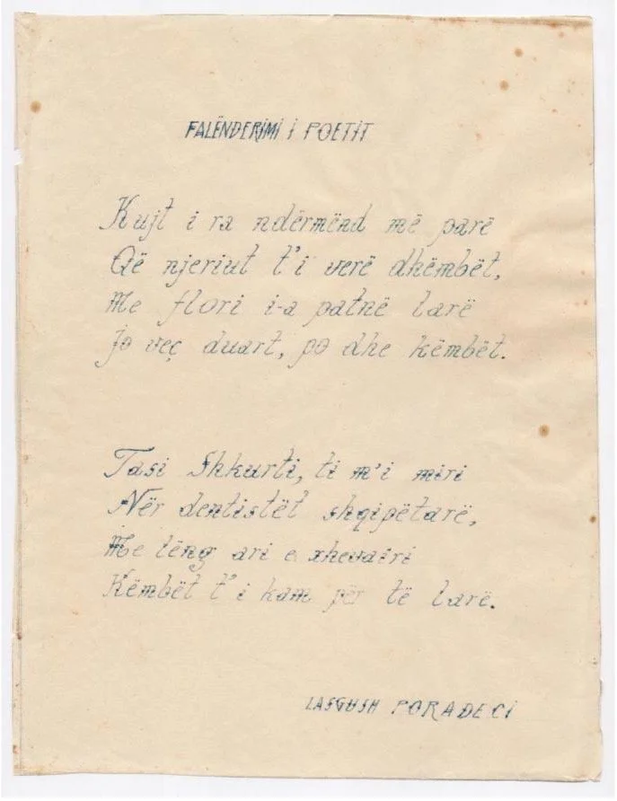 While this poem comes from a special moment of inspiration of the poet Lasgush Pogradeci, this is how he writes for his fellow and doctor. As I would not dare to translate the Lasgush poetry, more or less the great poet expressed his respect and gratitude to doctor Tasi Shkurti this way: