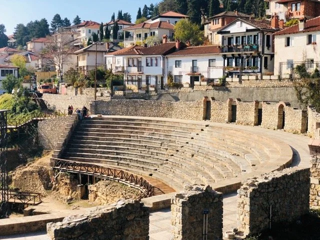 The old town center of Ohrid features well-preserved ancient urban architecture dating back to the ancient town of Lychnidos since 3rd century BC, including forums, public buildings, housing, and religious structures.